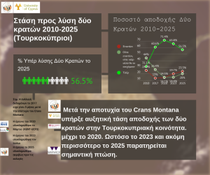 Το μήνυμα των ψηφοφόρων είναι διπλό: επαναβεβαίωση της Τουρκοκυπριακής αυτονομίας και επανασύνδεση με τα ευρωπαϊκά πρότυπα. Με το πολιτικό ημερολόγιο να παραμένει ήρεμο εως το 2028 (εκλογές σε Τουρκία, ΗΠΑ και Κύπρο), διανοίγεται παράθυρο για ουσιαστική διπλωματική επανεκκίνηση. Αν αξιοποιηθεί σωστά αυτή η στροφή μπορεί να αναζωογονήσει τη διαδικασία λύσης και να επαναφέρει την τουρκοκυπριακή πολιτική σε μια φιλειρηνική και προοδευτική τροχιά. Σε αυτή την έρευνα έχουν επίσης εντοπιστεί πακέτα λύσης του Κυπριακού προβλήματος ως παραλλαγές του πλαισίου Γκουτέρες που θα μπορούσαν να γίνουν αποδεκτά από την πλειοψηφία της Τουρκοκυπριακής κοινότητας. Σε επόμενη ανακοίνωση της ερευνητικής ομάδας θα παρουσιαστούν στο κοινό με παράλληλη παρουσίαση των προτιμήσεων της Ελληνοκυπριακής κοινότητας.