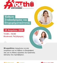 Στο πλαίσιο της Έκθεσης Σταδιοδρομίας και Επιχειρηματικότητας 2026 #YouthEmpowered, σας προσκαλούμε να συμμετάσχετε στα εργαστήρια: 🔹 CV Clinic 🔹 Mock Interviews 📅 Πέμπτη, 23 Απριλίου 2026 🕚 11:00 – 14:00 Ελάτε να λάβετε εξατομικευμένη καθοδήγηση για το βιογραφικό σας και να δοκιμάσετε τις δεξιότητές σας σε προσομοιωμένες συνεντεύξεις με επαγγελματίες. 👉 Τα εργαστήρια λειτουργούν με […]